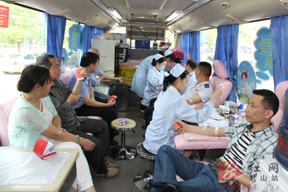“我是第二次献血,主要想通过献血贡献自己的微薄力量,帮助更多人。”正在献血的公安干警汤斌华说,他们有十几人是从执勤的地方赶过来献血的,等会还要赶过去上班。在献血的人群中,一位妇女急匆匆赶过来要献血,当医生得知她上次献血是在今年正月初十二,时间间隔还不到六个月时, 耐心给她讲解暂时不能献血的原因。原来她是君山糖厂的一名退休职工汤亮,51岁的她已献3次血了。“只要我的血能够被采用,我都不会放弃每一次的献血机会。这不仅能帮助别人,也说明我自己的身体很健康。”汤大姐坚定地说。她用自己的实际行动向大家宣传了献血的好处,为大家做出了榜样,越来越多的干部职工和群众都加入了义务献血的队伍中。