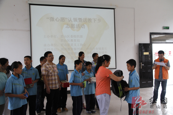 为积极培育和践行社会主义核心价值观,结合省文明办、省志工办倡导的“学雷锋,见行动,认领微心愿,温暖身边人”志愿服务主题活动,君山星星义工协会组织策划了“点亮‘微心愿’ 争做‘圆梦人’”主题活动,活动分为“微心愿”认领和送教下乡志愿活动两部分。此次活动得到了湖南教育报刊社和君山区各界爱心人士的大力支持。