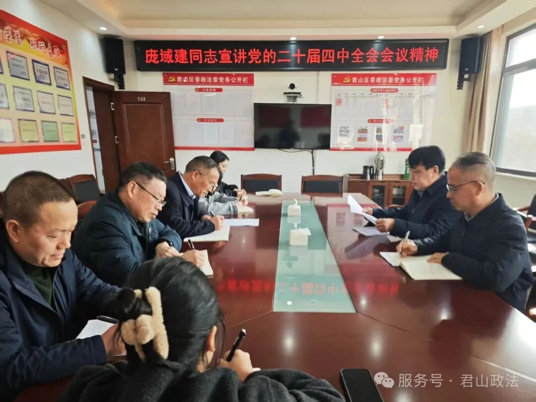 12月8日,区委常委、区委政法委书记庞域建在区委政法委机关宣讲党的二十届四中全会精神。区委政法委机关全体人员参加。